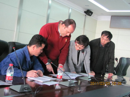 2011年俄方技術(shù)總監(jiān)來我公司針對(duì)電廠大型機(jī)組安裝超聲波除水垢機(jī)器,親臨現(xiàn)場(chǎng)制定安裝方案。